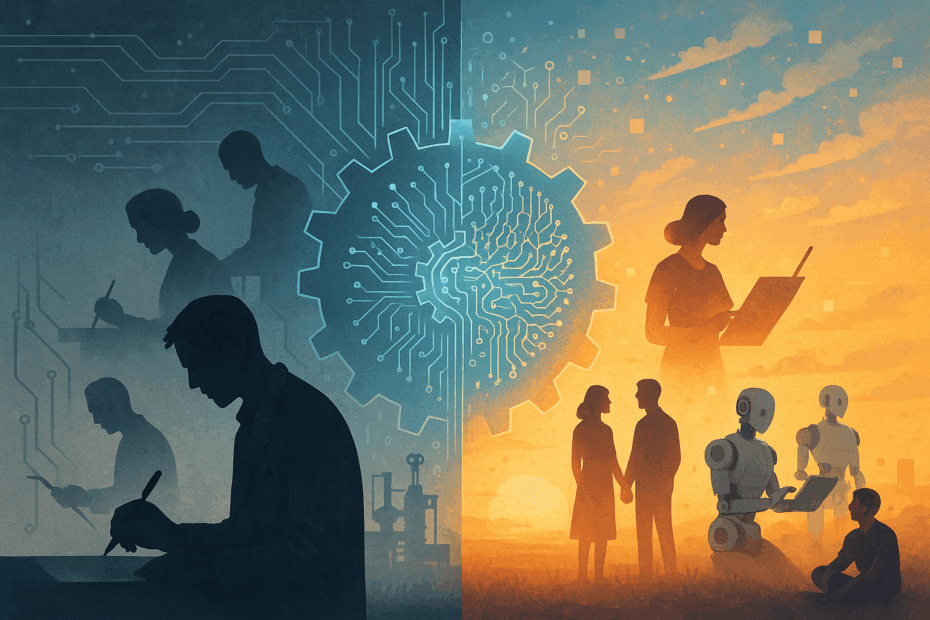 A forma como você descreve a iminência da “era pós-trabalho” não como um futuro distante, mas como uma realidade que “já começou”, é poderosa. A analogia com a Revolução Industrial, destacando a simultaneidade e a velocidade da transformação atual, ajuda a dimensionar a magnitude da mudança. A inversão da pirâmide do trabalho, onde nem mesmo as profissões intelectuais no topo estão imunes, é um ponto crucial e muitas vezes subestimado.